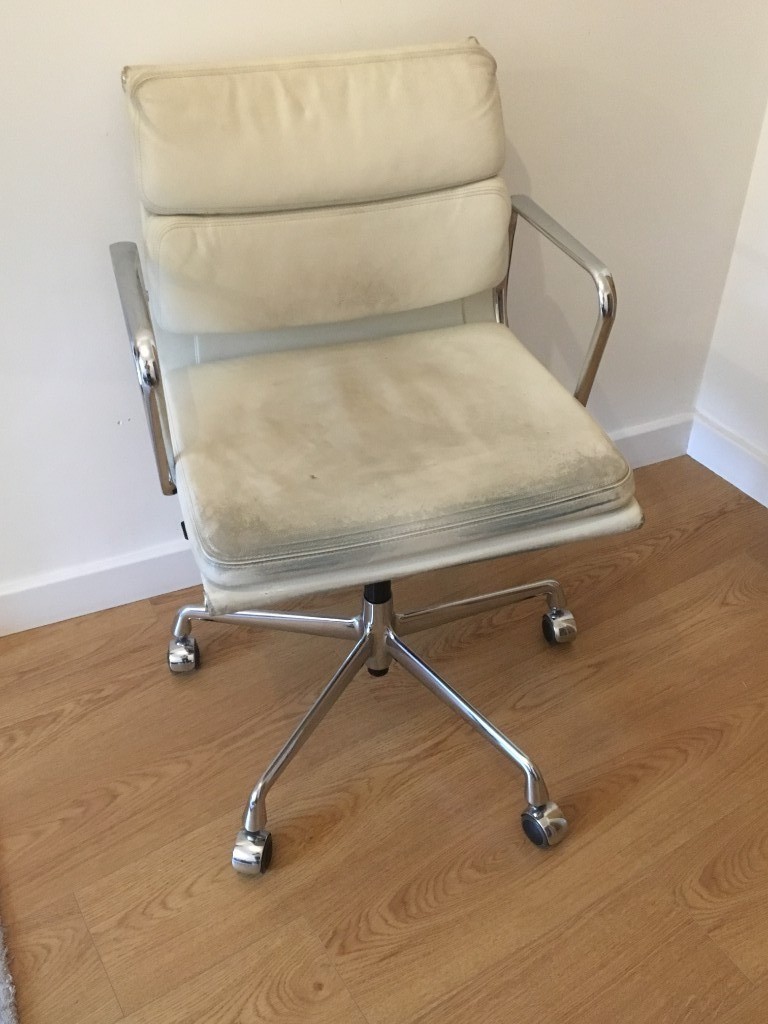 Handsome, ergonomic, luxurious and this one is in great shape, just ready for a new home. White leather eames office chair iconic for a reason. Once you own one, you'll see why thousands of busi Each shell is made up of 7 layers of molded plywood, though the original chair was designed with only 5. Shop by room shop by room new arrivals new.